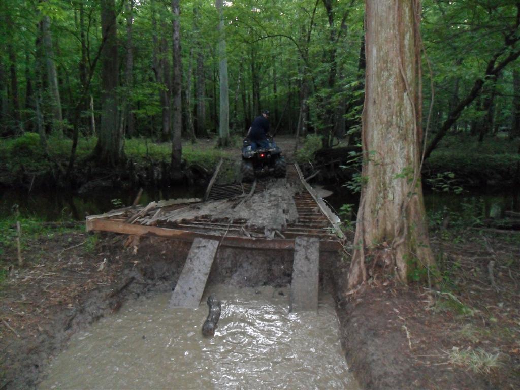 Yeah, good times…. OK so we kept riding and encountered some awesome, gnarly terrain. We crossed several questionable bridges, including an old bridge made from a tractor trailer floor: