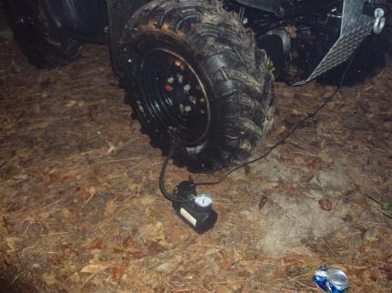…so it’s not uncommon to have to improvise when there’s an incident on the trails. In my case, I had a tire issue. While night riding, I hit a log in the trail and it applied so much pressure on my front tire that it shot an old patch-plug out of the tire like a bullet with a stream of pressurized green slime. Unfortunately, we were miles away from camp. It’s in situations like this that you have to analyze your surroundings and improvise with whatever you can find, or “MacGyver” it so to speak. On the side of the trail I found an old cigarette butt. I smeared some of the green slime sealant on it and used a small stick to plug it into the sidewall of the tire effectively sealing the hole. Fortunately, someone had a 12V air pump and we were able to air up the tire and finish the ride. Below you’ll see the cigarette butt in the tire.