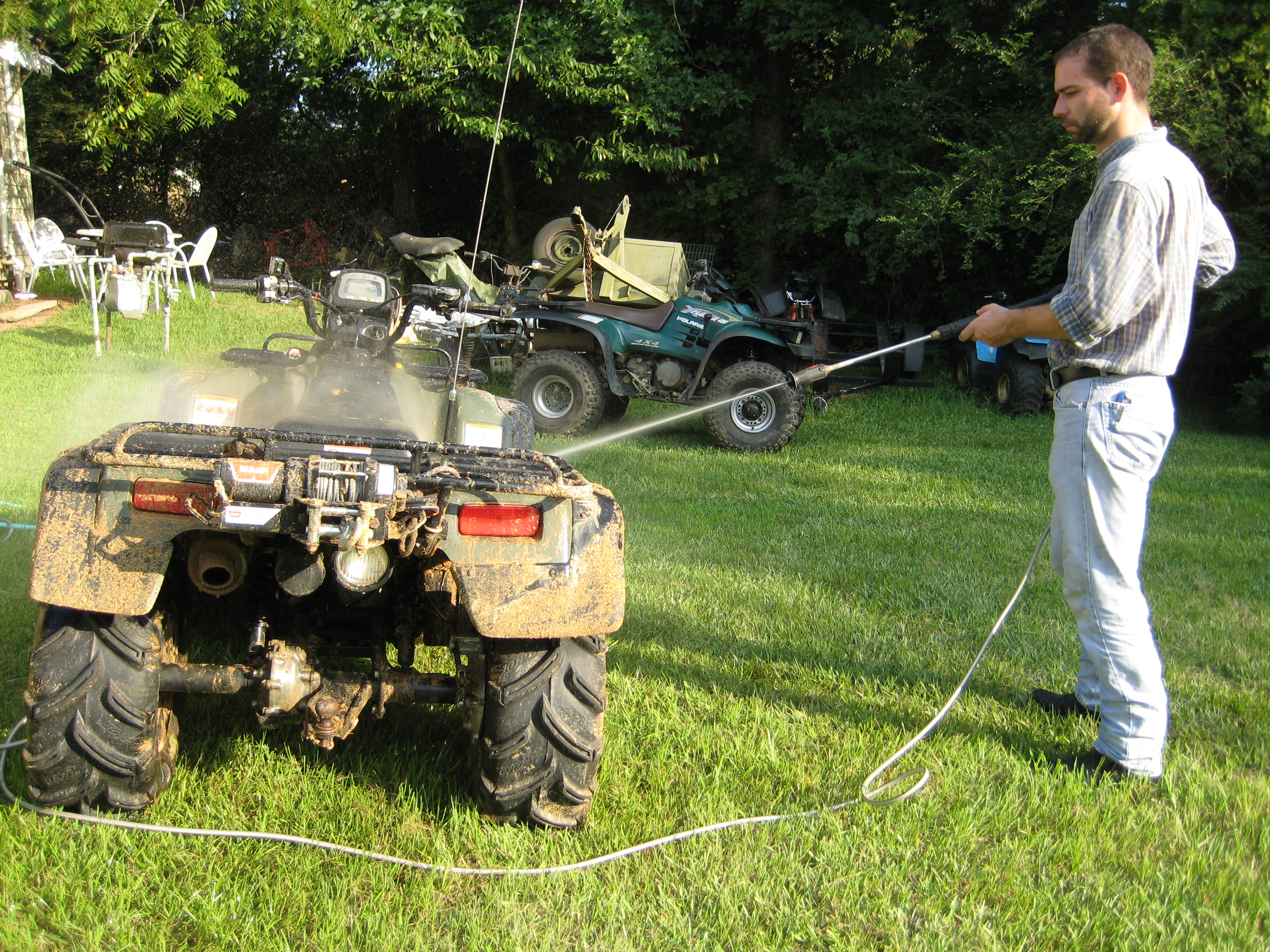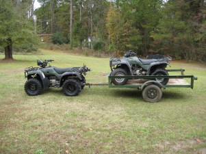Shortly after installing the new tire combo, I took it on a good night ride and developed some conclusions. In comparison to the Dirt Devils, I found that the SwampLites certainly rode smoother overall, and the larger diameter gave my Foreman a better top cruising speed. Also, I was surprised at how much the additional ground clearance helped. In wet sandy conditions, the improvement was moderate but not as much as I had anticipated. And for the cons… I immediately noticed that the SwampLites didn’t get near the traction on most surfaces that the Dirt Devil XT did. This is due to a combination of the less aggressive tread (in soft terrain) and the more narrow footprint (in all terrain) of the SwampLite. I wouldn’t mind that too much if the combo was lighter than my Dirt Devil setup, but when I compared them, they were both about the same weight so I really didn’t gain anything there. And finally, I learned that 27″ tires, a bit taller than the 26″ (and certainly taller than the stock 25″), proved to be a bit much for the stock suspension geometry. The front tires rubbed the fenders when the suspension flexed heavily, and I could feel some pops and tweaks in the chassis that I didn’t normally notice. My synopsis: I believe the SwampLite is a decent all-around tire, but if I were to run a set, I would downsize to a 26″ and place a wider size on the rear for better traction. I actually think they would be a good combo for my machine. But at the end of the day, the 26″ Dirt Devil XT is a better fit for my machine and riding style than a 27″ of any brand. So that’s what I’ll stick with for now. If I can find a deal on something a little less aggressive but keep the current size, I think we’ll have a winner.