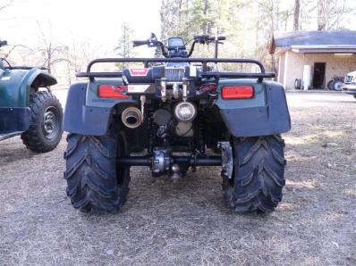 I purchased a Foreman to part out, and it happened to have a nice set of 27″ SwampLites on ITP steel wheels. I had to give them a shot on my machine. The rims they were on had gotten a bit rusty, so the first thing I did was strip them down and paint them low-gloss black. Then I installed them on my Foreman. You can see the difference one inch in tire diameter can make as seen below: