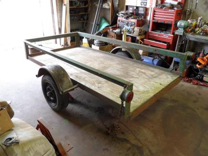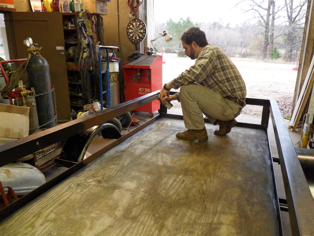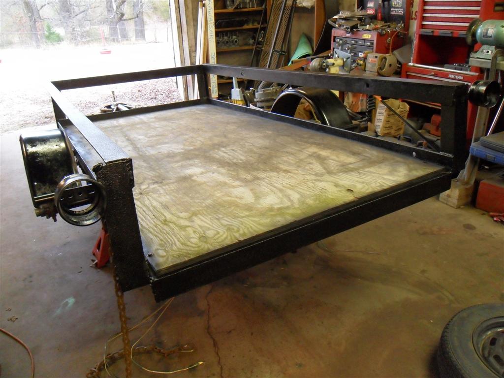 Once I got most of the old paint and rust stripped from the metal, I began painting the trailer with my gravity-fed pneumatic paint gun. I used a good Rustoleum black industrial enamel.