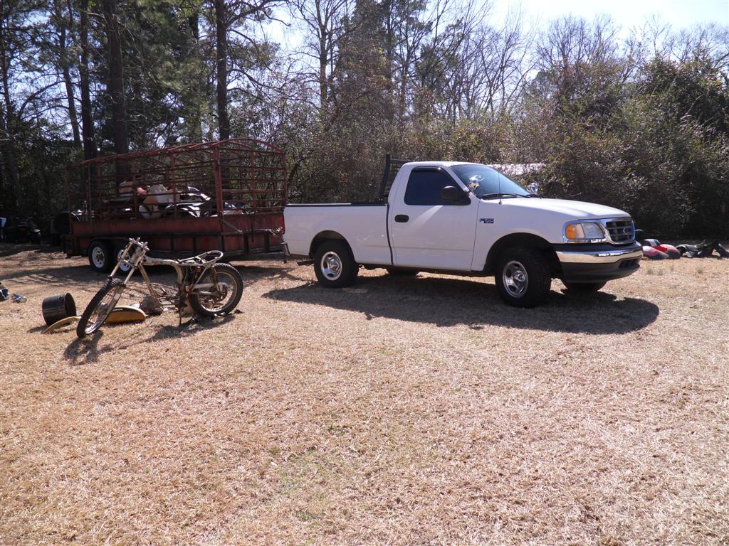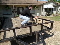 Alright, now we’ll take a look at what went into fixing up this old trailer. I didn’t have room in the shop, so I’m out on the gravel for this one. I’m fortunate in that the trailer was in decent shape at the start. The boards were not rotted, the metal was all straight and undamaged structurally, and the axles were in good shape. First, I put it up on jack stands so I could remove the wheels and begin stripping the old paint.