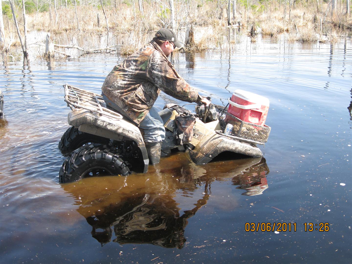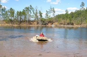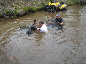 After last year’s expedition, Chris was hooked. He showed up with machines and fish cooker in tow. After drowning his ATV last year, he vowed not to make that mistake again, so this year he unveiled a Max Amphibious 6-wheeler. When those of us on four wheels were carefully avoiding deep water disaster in the creek, he easily motored by us…laughing.