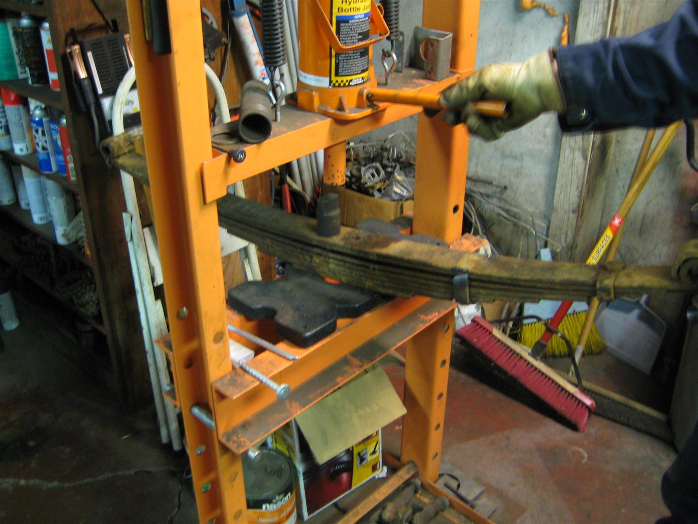 I turned my attention to the driver side. I attempted to repair it in the same manner discussed above, but it was too far gone so I returned to my original idea of installing a brace. Since there is plenty of room behind the step board and to the rear of the hydrovac booster, I could easily weld a support from the back of the step board to the frame of the truck. I browsed my scrap pile for something I could use as a brace and I found the perfect item. It’s a piece of leaf spring left over from the leaf spring project. This is why it pays to keep junk around.